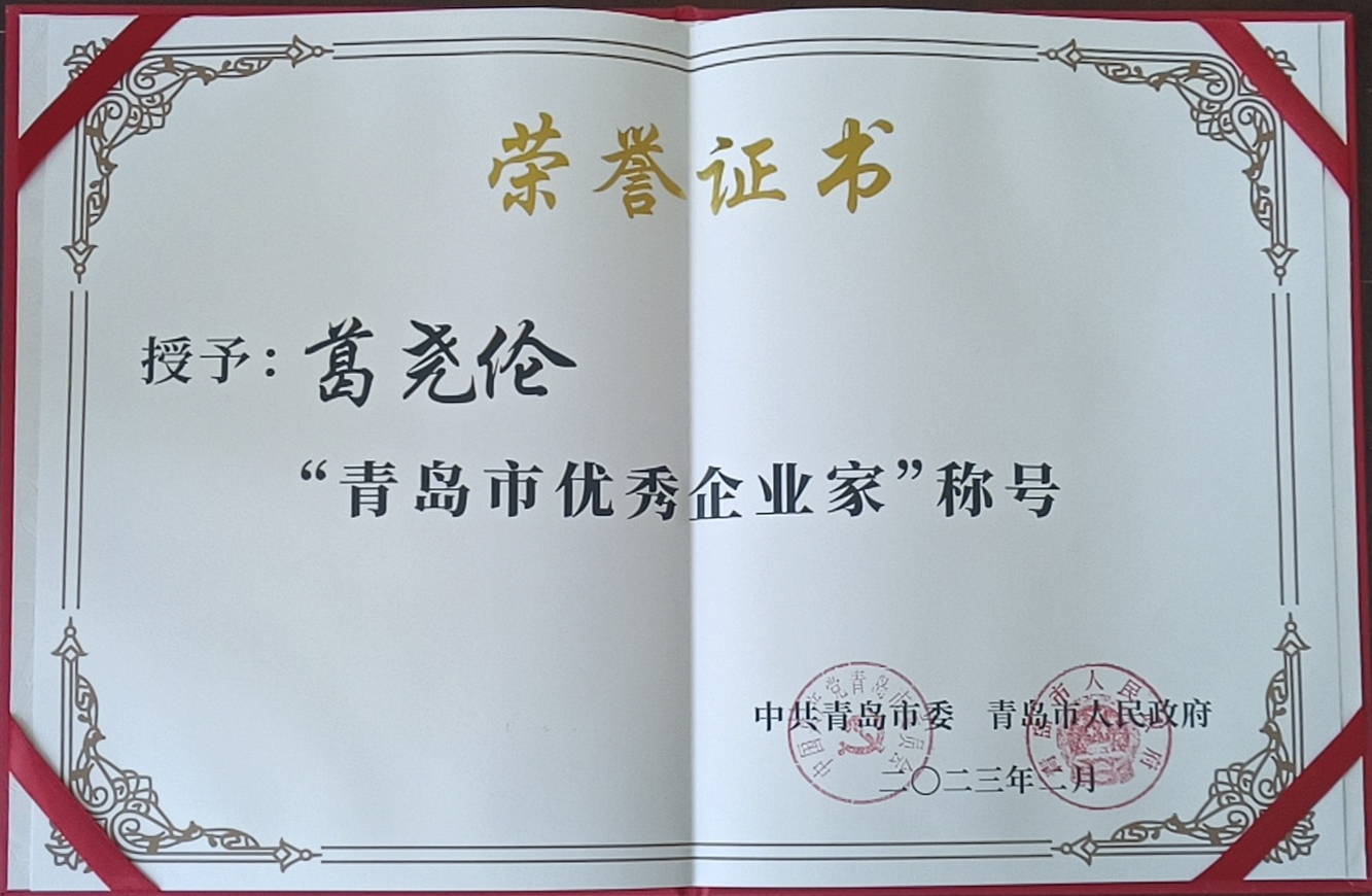 會上宣讀了《關(guān)于表彰青島市優(yōu)秀企業(yè)家的決定》,集團(tuán)董事長葛堯倫榮膺“青島市優(yōu)秀企業(yè)家”。