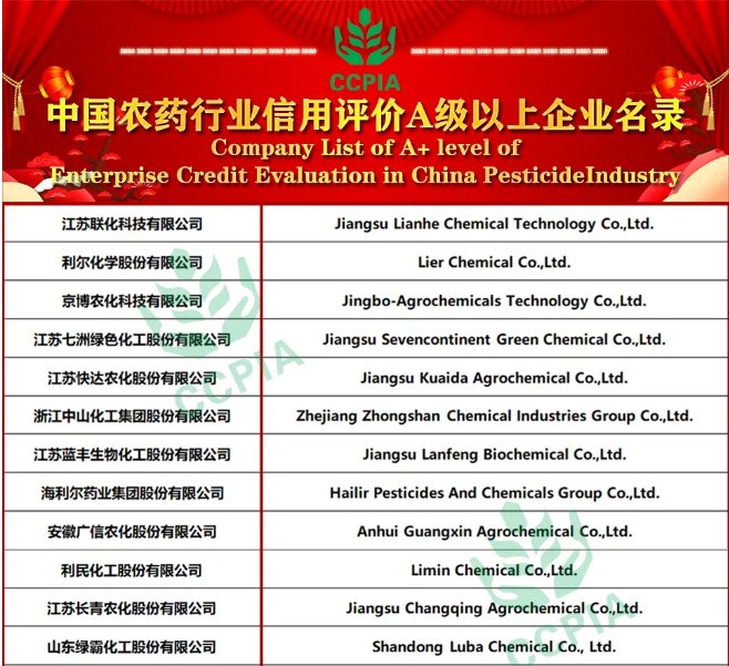 ? ?????10月11日,中國農藥工業(yè)協(xié)會在上海召開第二十屆全國農藥交流會,會議期間中國農藥工業(yè)協(xié)會向全社會隆重發(fā)布了2020年中國農藥行業(yè)企業(yè)信用評價等級的名單,海利爾藥業(yè)集團股份有限公司入選中國農藥行業(yè)信用評價A級以上企業(yè)名錄。