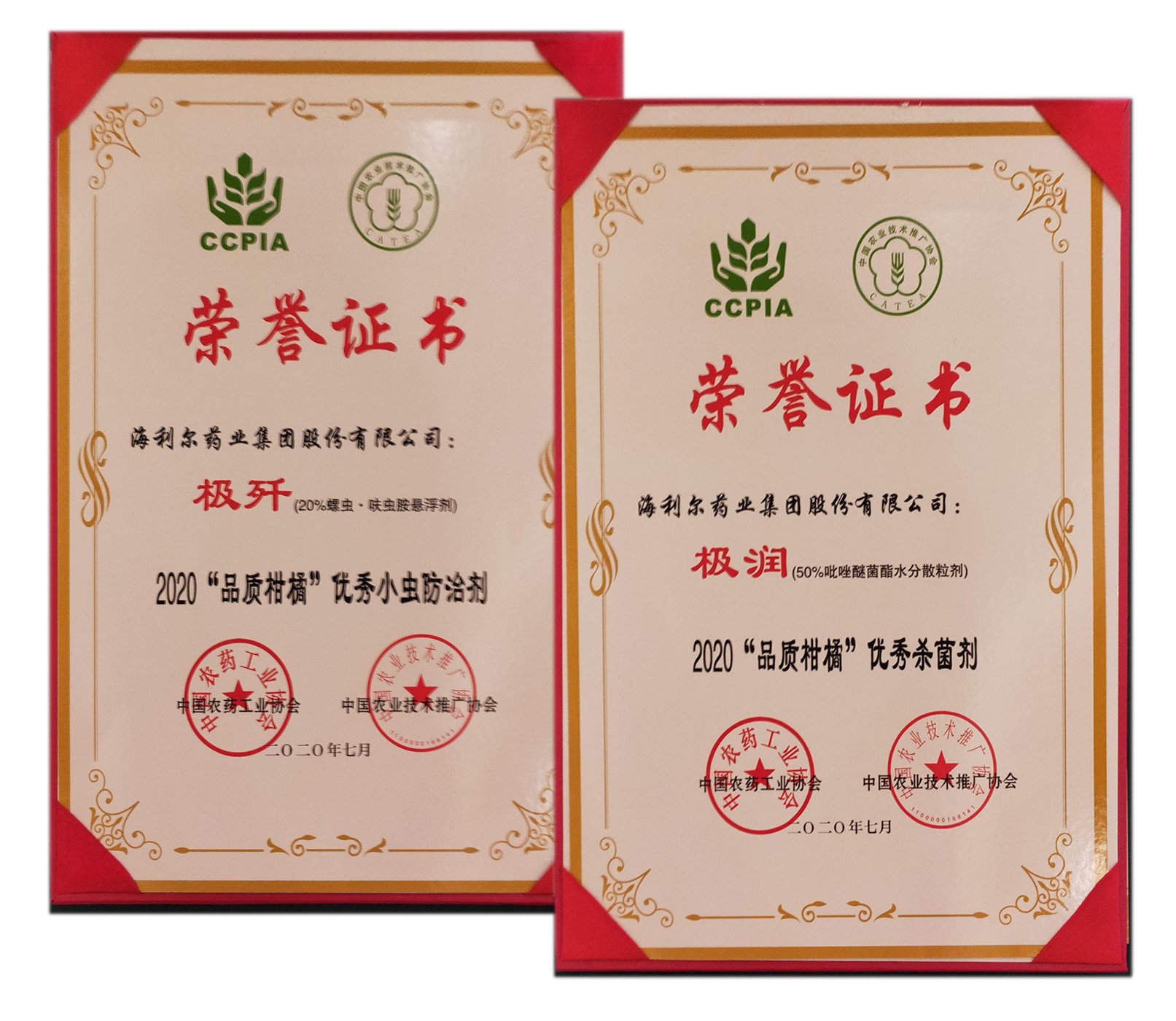 海利爾藥業(yè)集團(tuán)極潤?被評選為2020“品質(zhì)柑橘”優(yōu)秀殺菌劑