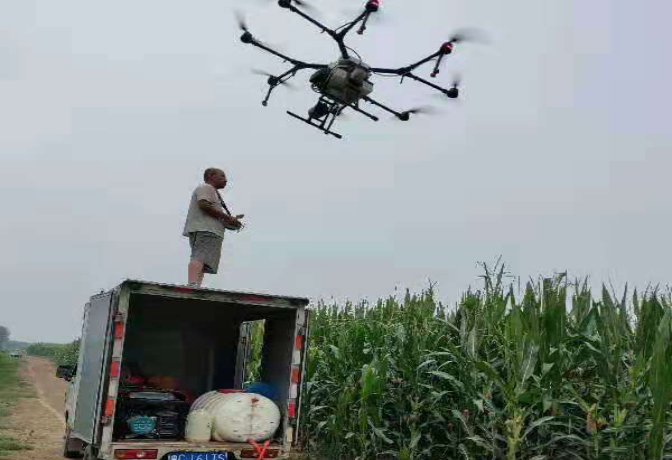 ? ? ? 德州市齊河縣一塊玉米田邊,伴隨著陣陣轟鳴,植保無人機快速飛過,在距離地面2米多高的農(nóng)田上空,均勻地將農(nóng)藥噴灑到玉米田間。當前正值玉米生長旺季,也是玉米害蟲繁殖生長期,為防止病蟲害對農(nóng)作物的侵害,提高種植區(qū)域玉米的產(chǎn)量和品質(zhì),德州齊河縣農(nóng)業(yè)農(nóng)村局組織“2019年中央財政農(nóng)業(yè)生產(chǎn)救災(zāi)資金項目”,海利爾藥業(yè)集團積極響應(yīng)采用“植保無人機”對齊河縣玉米種植區(qū)進行病蟲害防治。