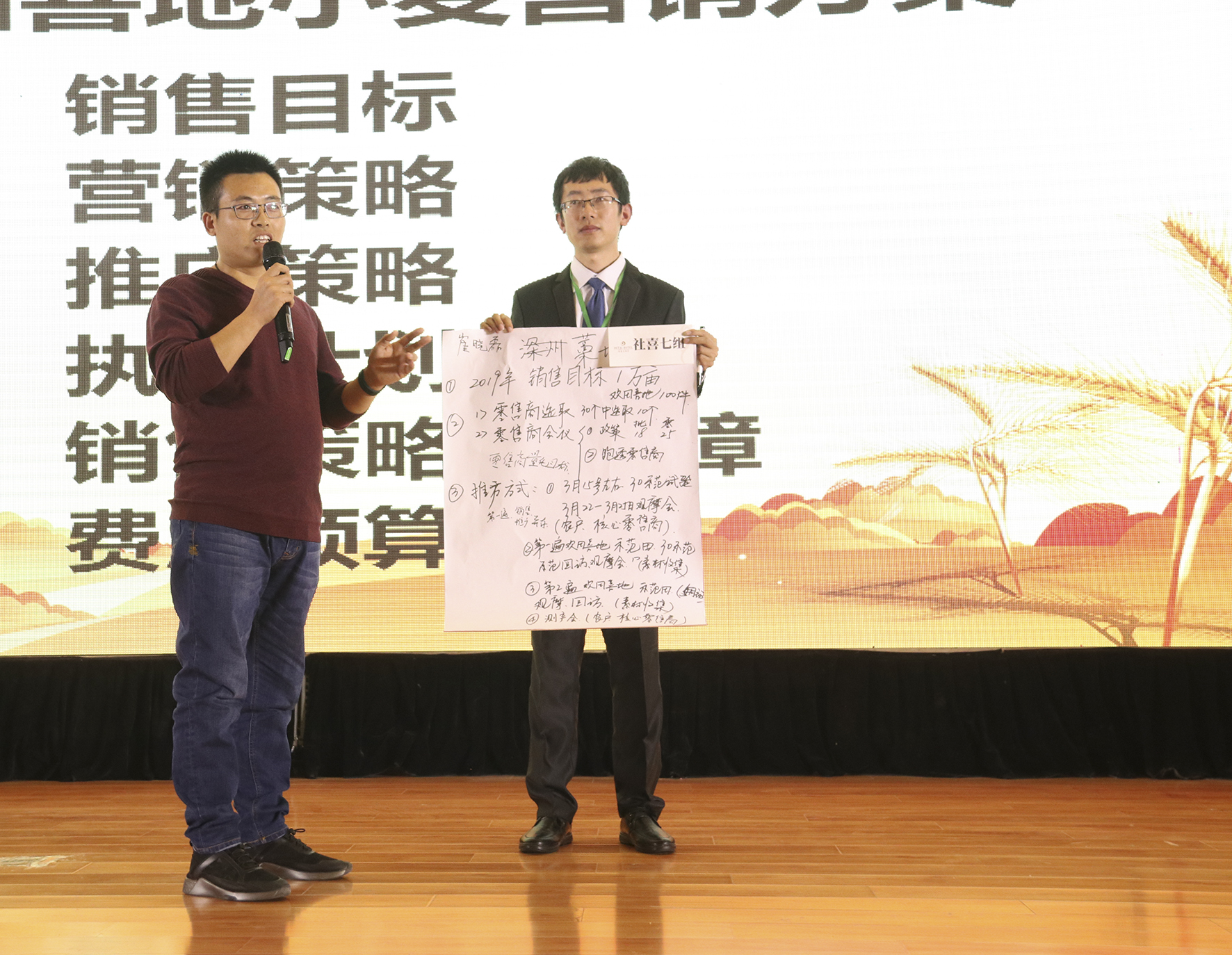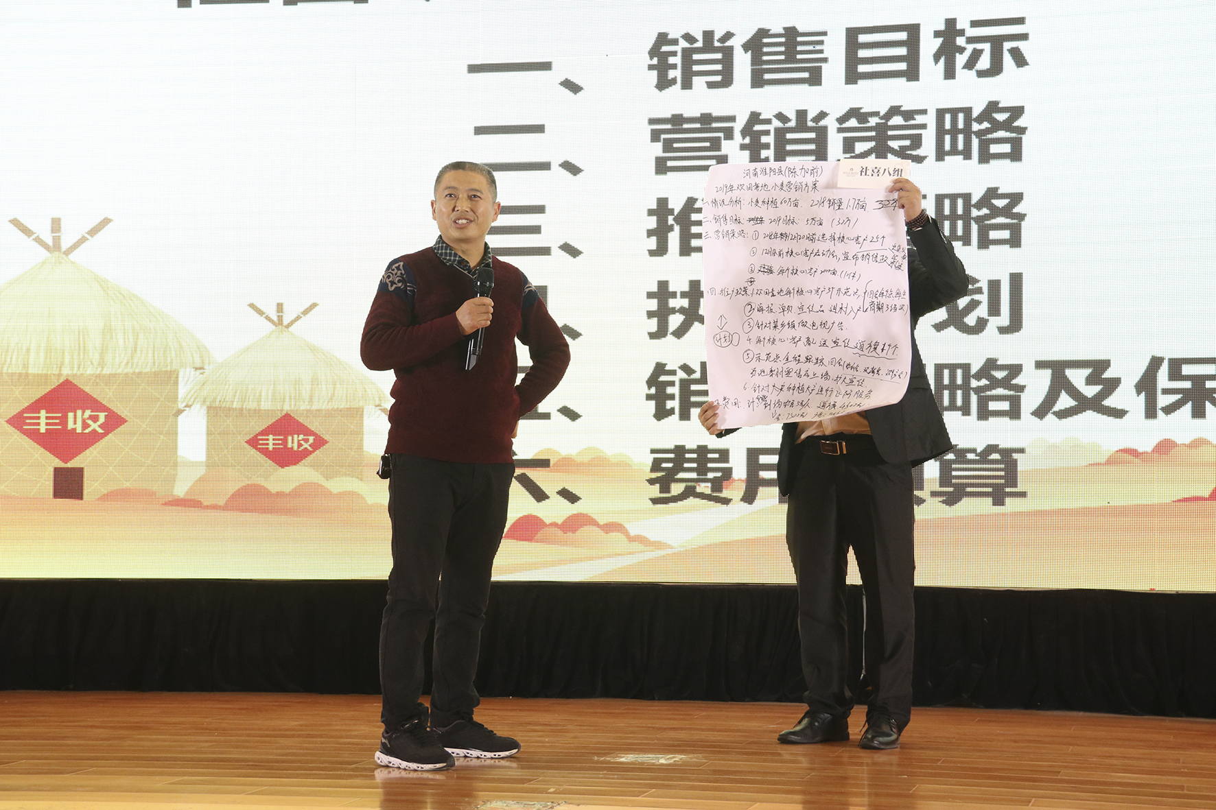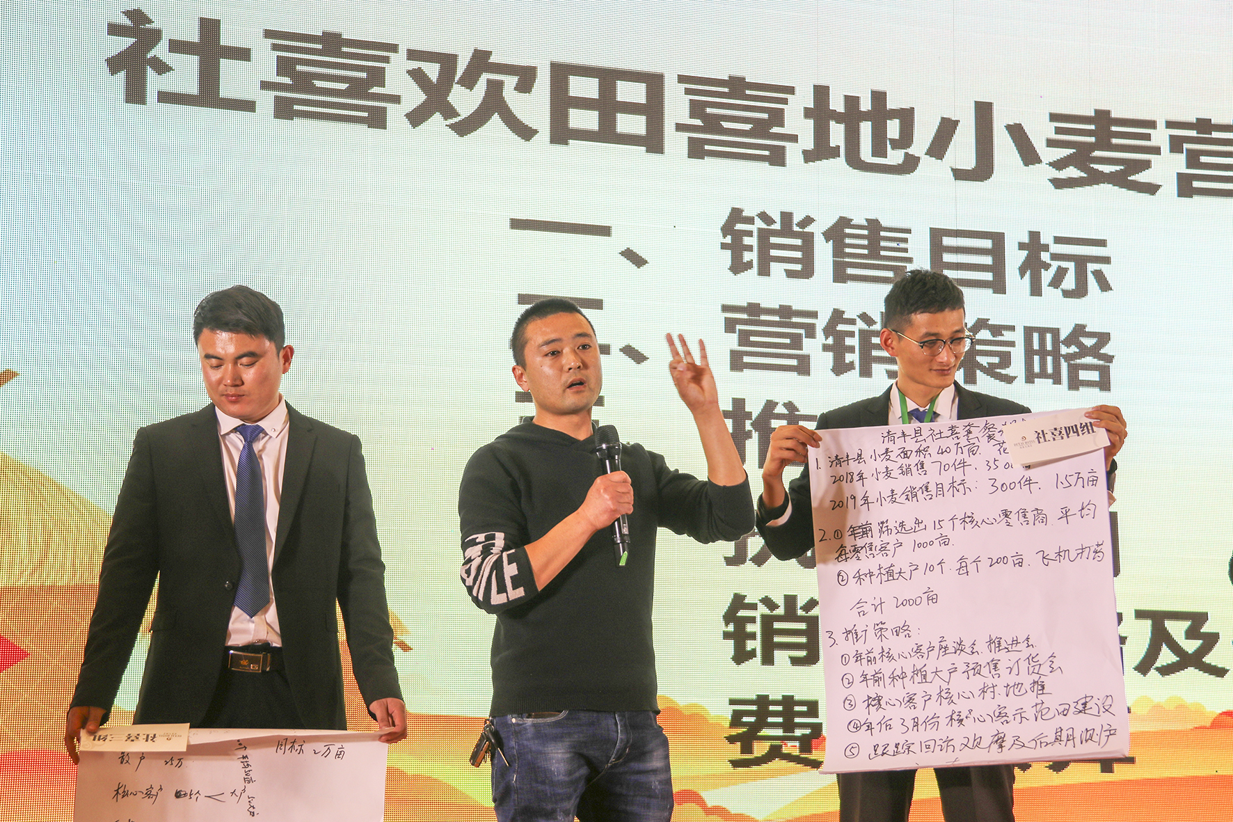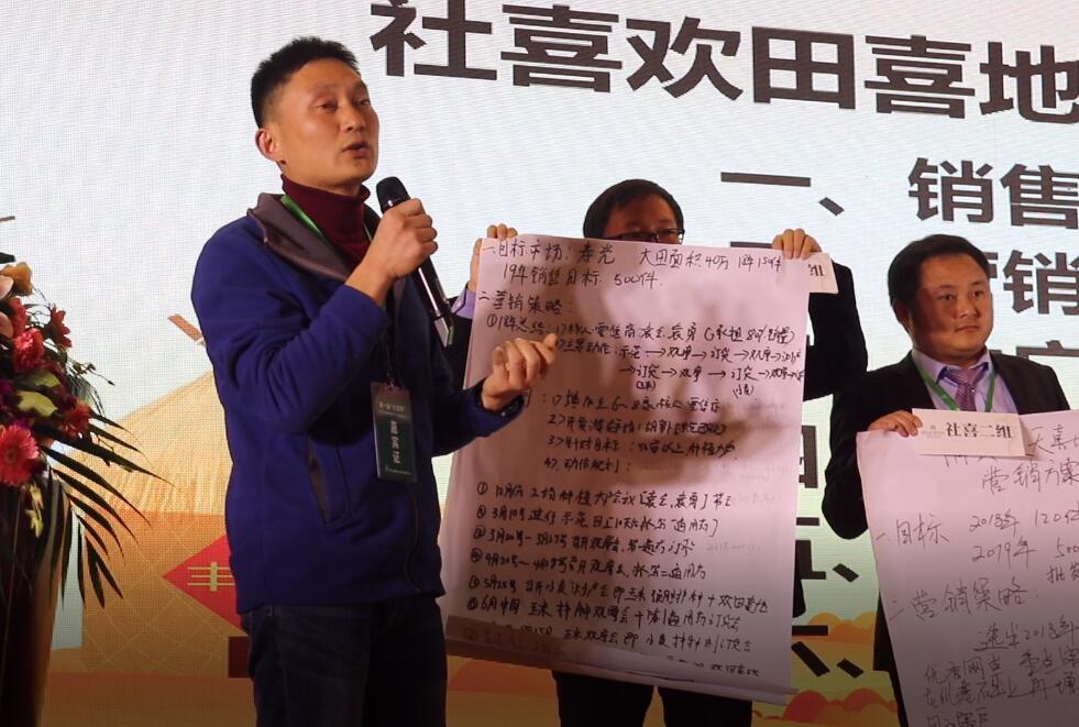 ?社喜七組:從30個零售商重點扶植10個忠實種植大戶,將零售商的作業(yè)流程復制給農(nóng)戶;服務真心,對客戶貼心,做事用心,有意向用意志完成一萬畝的任務