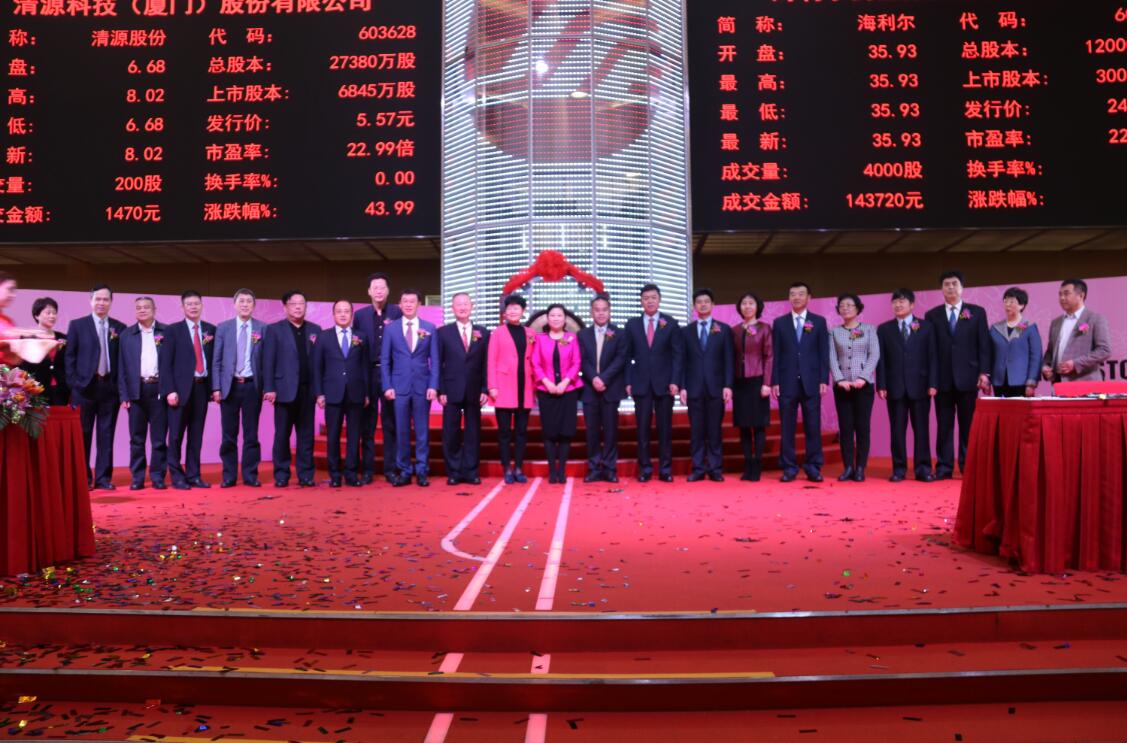 上午9:30,公司董事長葛堯倫協(xié)同青島市政府董曉莉副市長,在上海證券交易所鳴鑼開市。青島市金融工作辦公室王鋒副主任、青島市城陽區(qū)政府劉青林副區(qū)長等領導也到場祝賀。