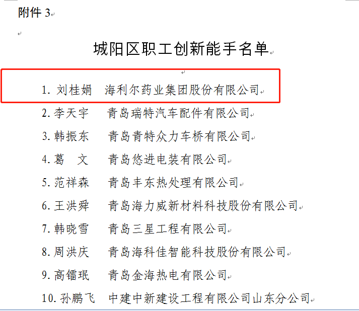 ? ? ? ?近日,青島市城陽區(qū)總工會公布2023年城陽區(qū)勞模和工匠人才創(chuàng)新工作室、城陽區(qū)創(chuàng)新型班組、城陽區(qū)職工創(chuàng)新能手等名單,集團研發(fā)中心主任助理劉桂娟獲評“2023年度城陽區(qū)職工創(chuàng)新能手”稱號。