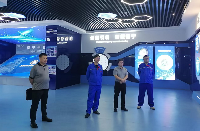 ? ? ? ?當日,肖局長一行首先參觀了展廳,詳細了解了集團的企業(yè)文化、發(fā)展愿景,并問詢了一期二期三期的主要項目、工藝、產(chǎn)品,以及生產(chǎn)過程中如何實現(xiàn)工藝的穩(wěn)定性和各種連鎖的可靠性。隨后,肖局長一行來到廠區(qū),進行了現(xiàn)場指導工作,隨行專家就恒寧生物目前現(xiàn)狀進行了評價和指導。參觀過程中,肖局長對恒寧生物的自動化、智能化程度予以高度評價和充分肯定。