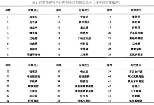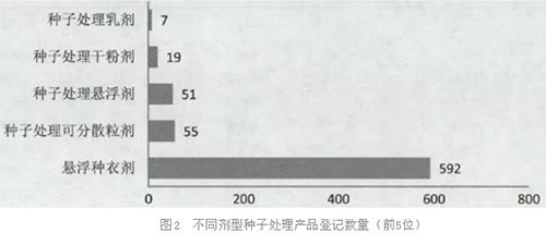 ??? 現(xiàn)有登記的種子處理劑中,含有福美雙、吡蟲啉、戊唑醇等老品種的產(chǎn)品占有較大比例,且含有克百威等毒性級別較高有效成分的產(chǎn)品也占有一席之地,產(chǎn)品結(jié)構(gòu)有待調(diào)整。另外,種子處理劑以混劑登記為主,登記數(shù)量在前20位的配方中,復(fù)配配方有13個,包括9個二元復(fù)配、4個三元復(fù)配。隨著近年來新引入有效成分的逐漸增多,如新型琥銪酸脫氫酶抑制劑、酰胺類殺蟲劑、微生物制劑以及植物生長調(diào)節(jié)劑等,為種子處理劑的優(yōu)化升級提供了更多的選擇。