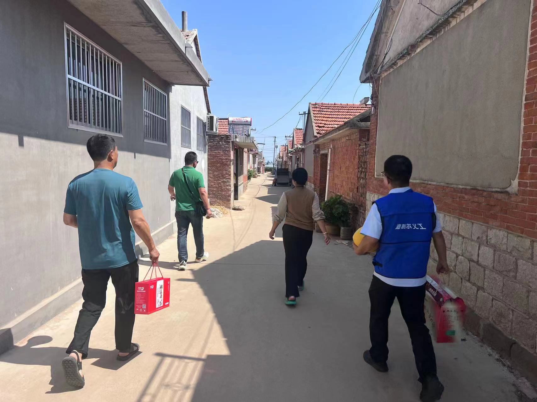 ? ? ? 6月26日,海利爾浪花志愿者代表一行4人來到萊西店埠等地,開展走訪慰問活動,為貧困家庭送去了大米、水果、面條等生活物資。