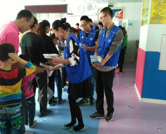 ???互動游戲結(jié)束后,志愿者們給孩子們分發(fā)禮物: