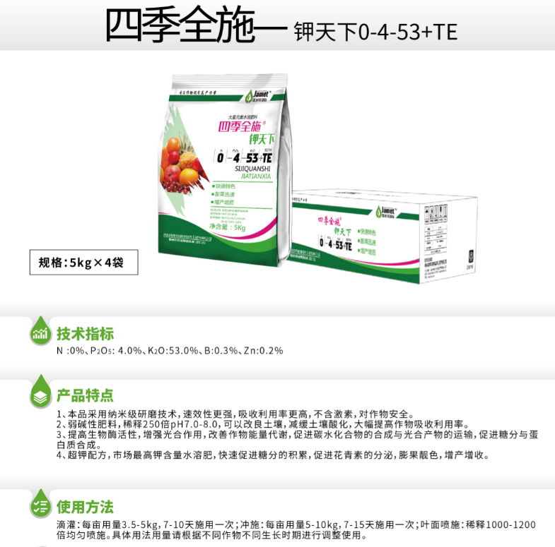 產(chǎn)品名稱 四季全施—鉀天下0-4-53+TE