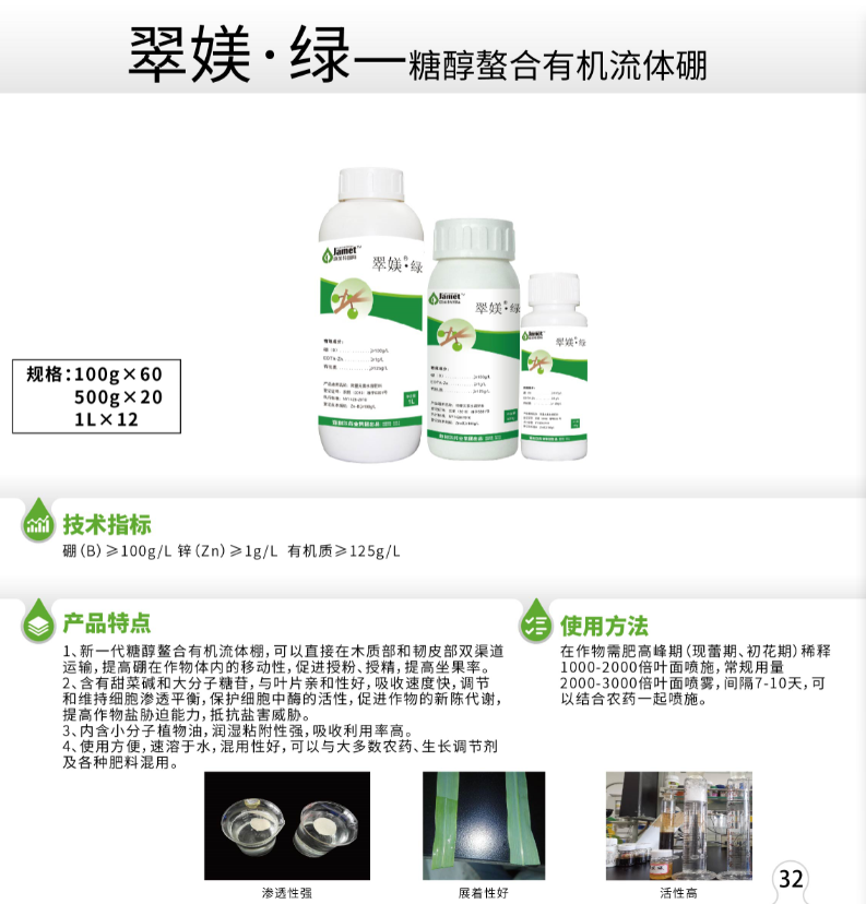 產(chǎn)品名稱 翠媄·綠糖醇螯合有機流體硼
